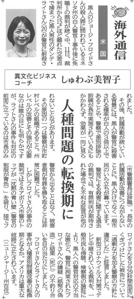 フロイドさんとライトさんの事件が、人種差別問題改善の転換期となるか。アメリカは重大な岐路に立たされています。