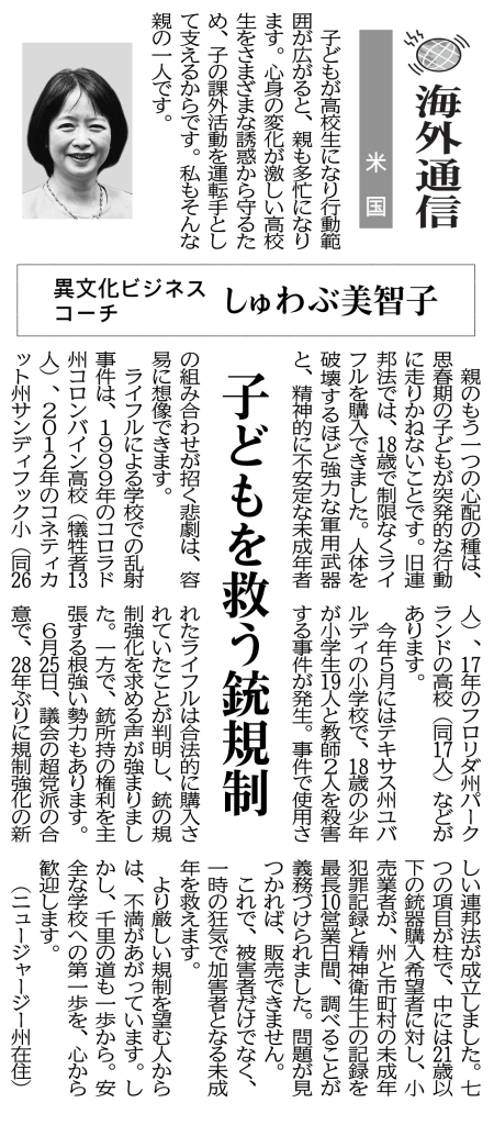 6月25日、議会の超党派の合意で、28年ぶりに規制強化の新しい連邦法が成立しました。七つの項目が柱で、中には21歳以下の銃器購入希望者に対し、小売業者が、州と市町村の未成年犯罪記録と精神衛生上の記録を最長10営業日間、調べることが義務づけられました。問題が見つかれば、販売できません。