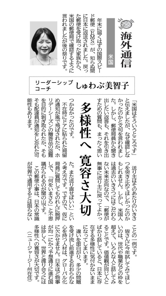 この郵便小事は、日本の常識が世界で通用するとは限らないことの一例です。