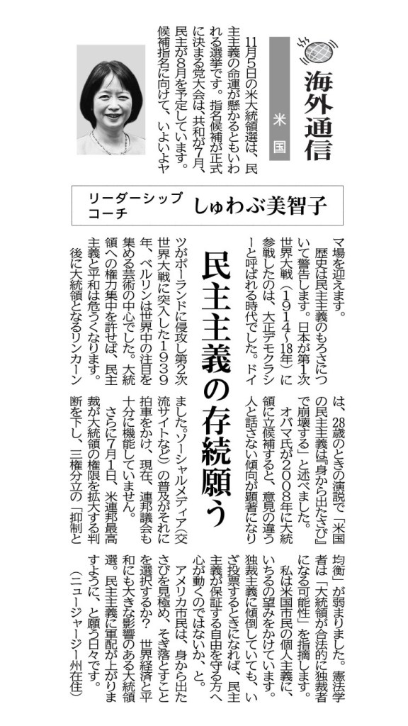 11月5日の米大統領選は、民主主義の命運が懸かるともいわれる選挙です。指名候補が正式に決まる党大会は、共和が7月、民主が8月を予定しています。候補指名に向けて、いよいよヤマ場を迎えます。