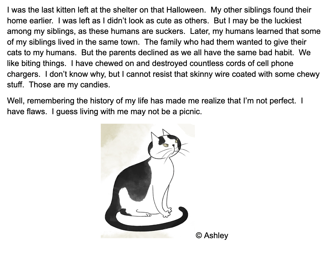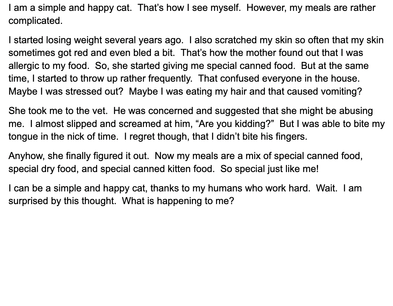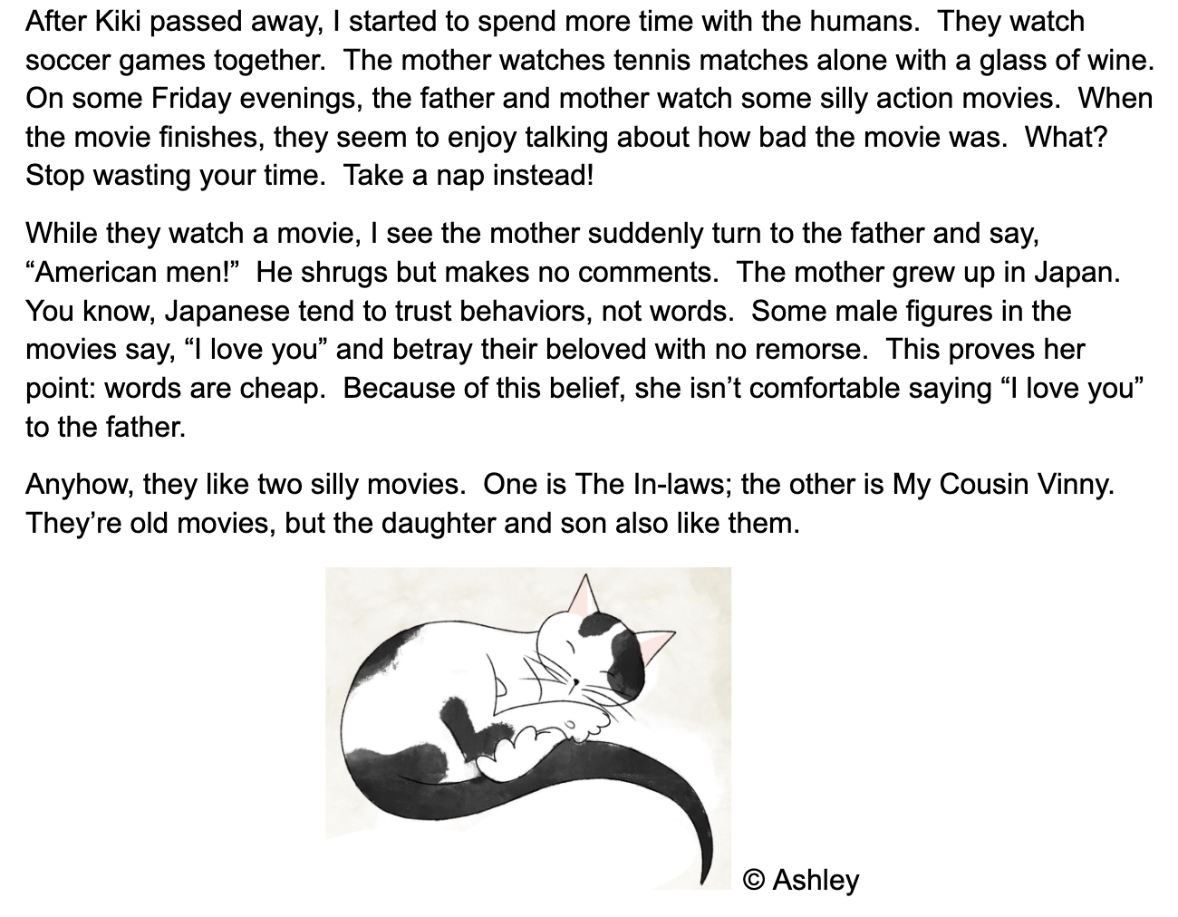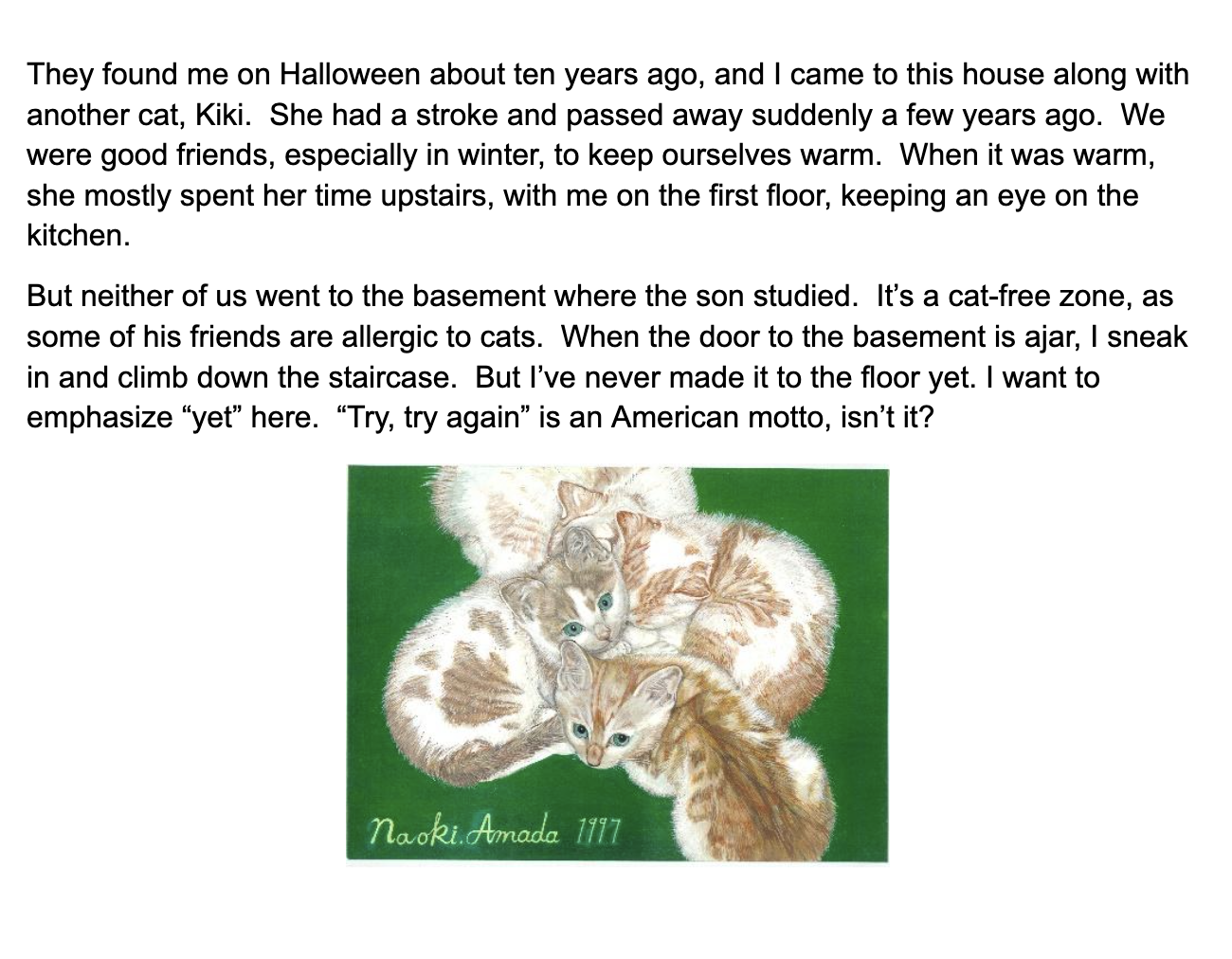 If My Cat Spoke English Posted on August 5, 2024September 4, 2024 by Michiko Schwab Share this: Share on X (Opens in new window) X Share on Facebook (Opens in new window) Facebook Like Loading...