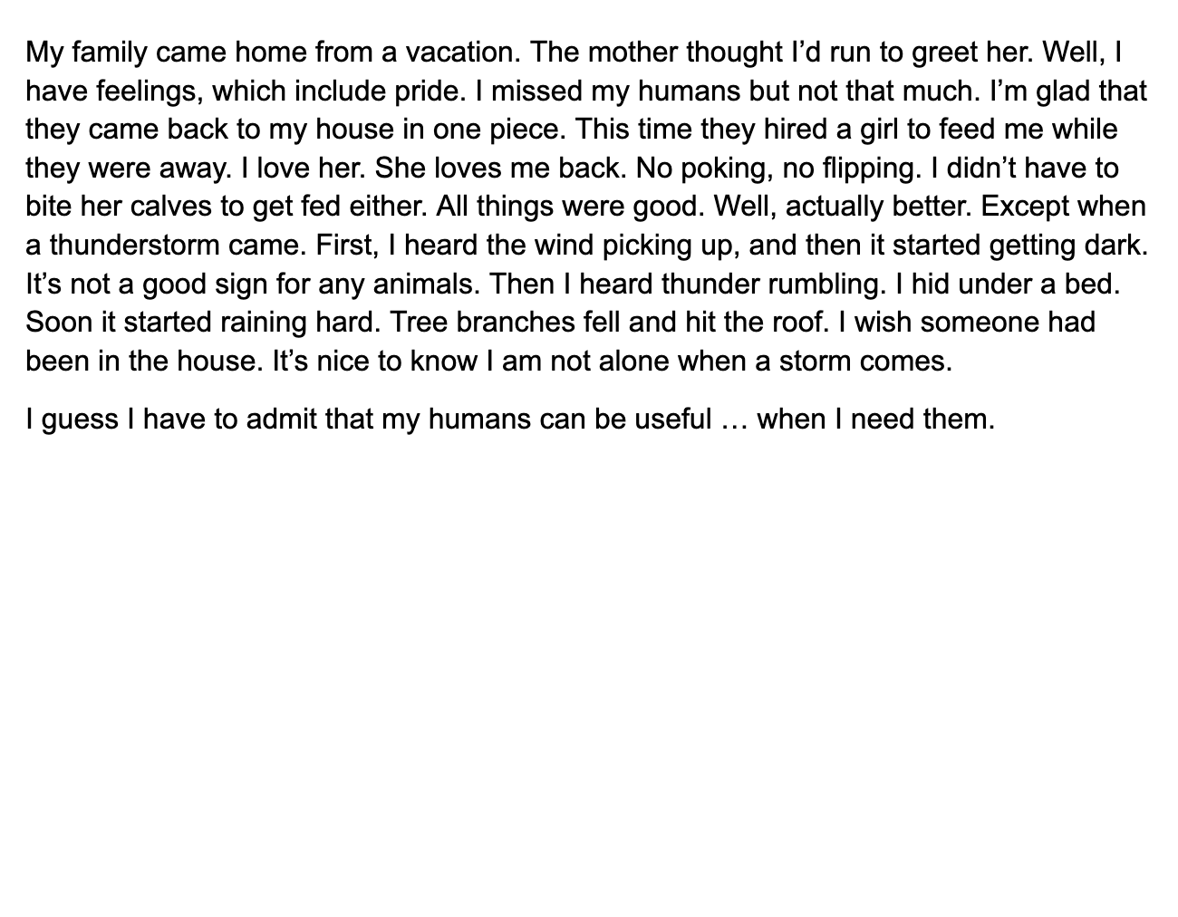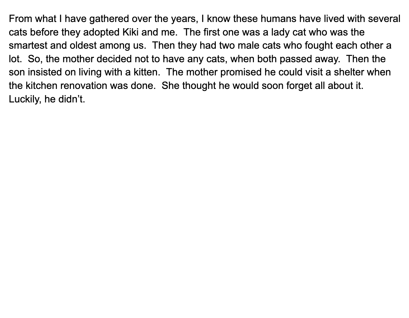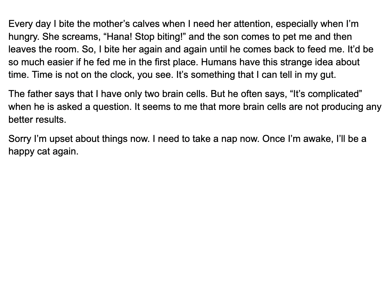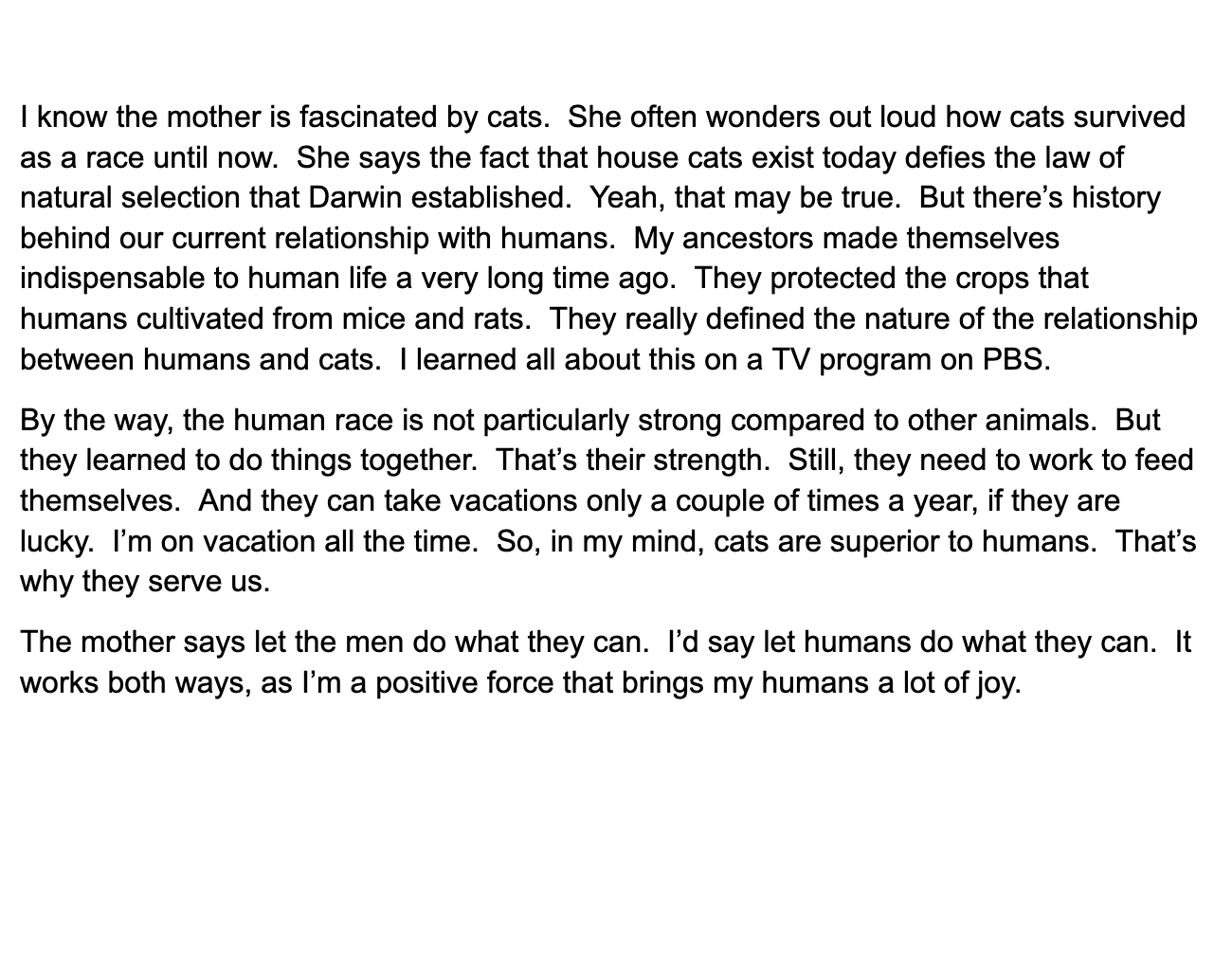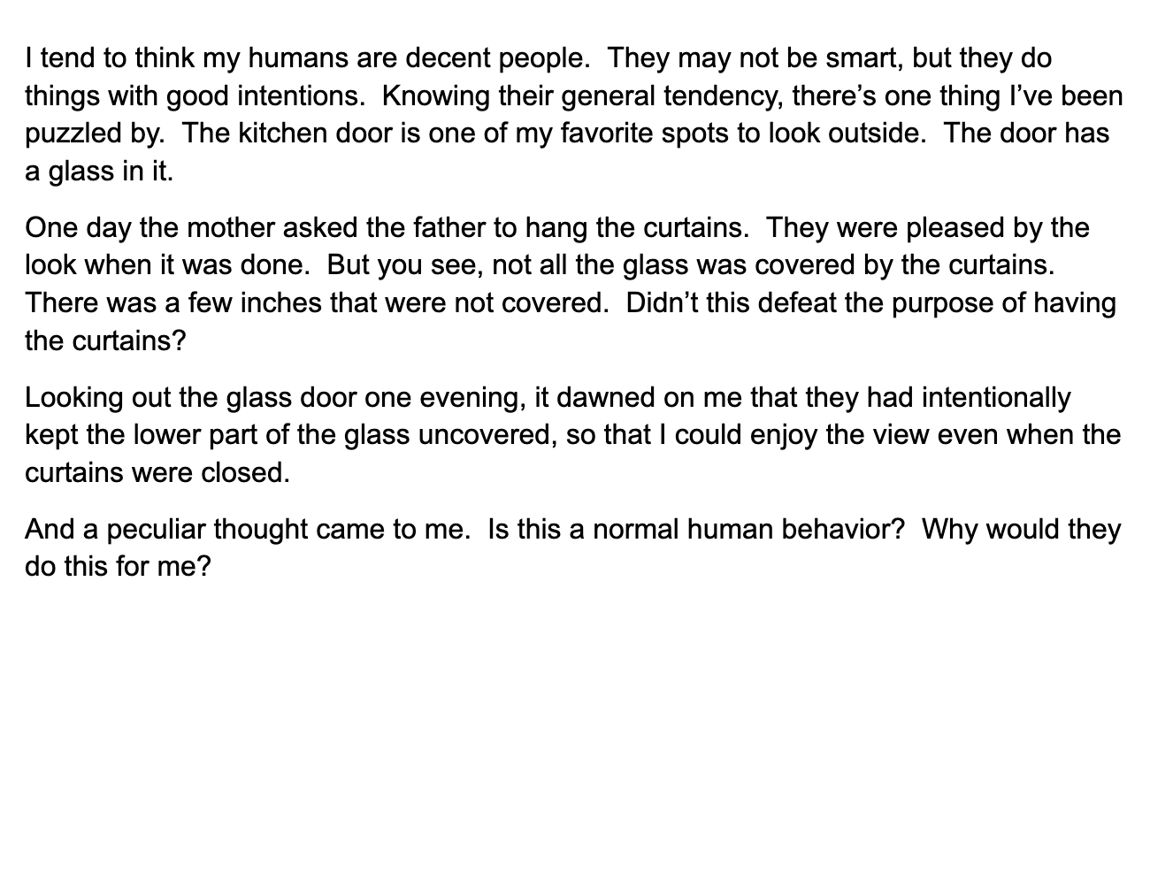 If My Cat Spoke English Posted on August 5, 2024September 4, 2024 by Michiko Schwab Share this: Share on X (Opens in new window) X Share on Facebook (Opens in new window) Facebook Like Loading...